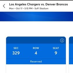 Chargers Vs Broncos 10/17/22$350Irwindale, CA