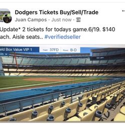 dodgers Tickets (2)$70Redlands, CA