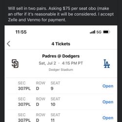 Dodgers Vs Padres- July 3rd$55Upland, CA