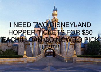I NEED TWO DISNEYLAND HOPPER TICKETS FOR $80 &CAN PICK UP NOW!!!!$0San Bernardino, CA