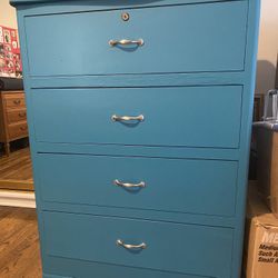 Solid Wood Dresser- Refinished In A Coastal Blue/Teal Color! 4 Large Drawers That Are Lined With A Marble Look Paper! Super Clean! $260West Covina, CA