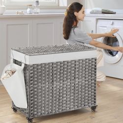 Laundry Hamper with Lid, 42.3 Gallons (160 L), Rolling Laundry Basket with Wheels, 3-Section Synthetic Rattan, Removable Liner, Bedroom, 29.9 x 13 x 2$30Ontario, CA