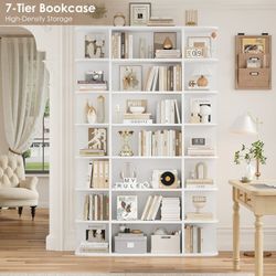 7-Tier Triple Wide Bookcase, 84.6" Tall Bookshelf with Curved Display Shelves for Living Room Home Office Study, White$99Fontana, CA