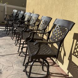 set of 6 beautiful high end heavy cast iron outdoor bar stool swivel super sturdy durable $900Corona, CA