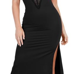 XXL Popilush Maxi Dresses for Women Deep V Neck Shapewear Lace Satin high Slit Bodycon Cocktail Dress Party Going Out$25Fontana, CA