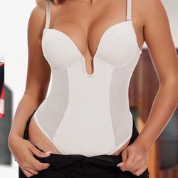 MEDIUM WHITE Shapewear Bodysuit with Built in Bra for Women Tummy Control Shapewear Plunge Bodysuits Backless Body Shaper$20Fontana, CA