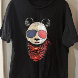 Men's Black Cotton Panda LED Graphic Crew Neck Short Sleeve T-Shirt Size L$6Grand Terrace, CA