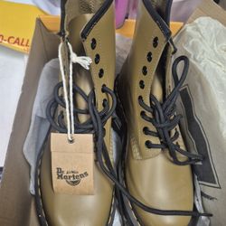 pair of Dr. Martens 1460 Bex 8-Eye combat boots in the antique olive smooth leather colorway. $100Victorville, CA