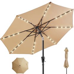 9ft Solar Patio Umbrella - Solar Lights LED Lighted Outdoor Market Table Umbrella, UPF50+ UV Protection with Push Button Tilt, Crank for Pool Deck and$60Corona, CA