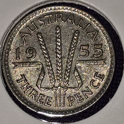 1955 Australia 3 Pence Silver .500 Coin$3Hesperia, CA