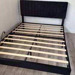 Queen Size Lift Up Storage Bed Frame/LED Lights/Charging Station/2-Tier Shelves Headboard/USB,Type-C Ports/Velvet Upholstered/Hydraulic Support/No Box$220Rancho Cucamonga, CA