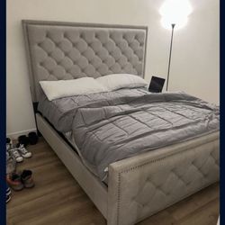 Grey King Size Bed - Arched Tufted Headboard With Studded Trim$250Ontario, CA