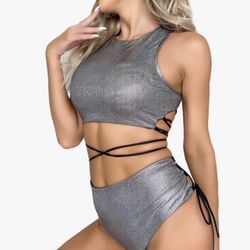Rave Holographic Bodysuit Mini Two Piece Hologram Metallic for Dance Party Clubwear EDM Festival$10Fontana, CA