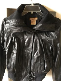BLACK LEATHER BOMBER JACKET PUFFY SIZE SMALL S WOMENS PUJK175 Ci Sono Cavalini$25Fontana, CA