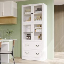 78.7" H Bookcase with Glass Doors, 4-Tier Bookshelves with 2 Drawers$120Chino, CA