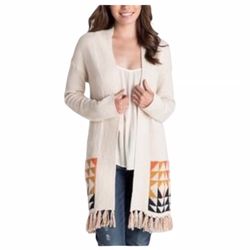 Roxy Boho Knit Long Cardigan Sweater Fringe Detail Women's size S $20Claremont, CA
