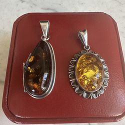 Choice of vintage 925 sterling silver, genuine amber pendant , both marked , gorgeous , one is a golden color amber , the other Baltic$35Hesperia, CA