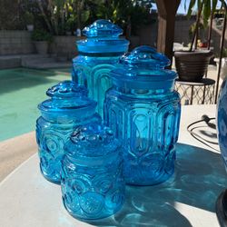 vintage LE Smith Moon and Stars blue glass canister set$200City Of Industry, CA