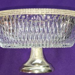 The Broadway Vintage Cut Crystal Glass Pedestal Bowl featuring a diamond pattern on the glass and a silver-plated rim and pedestal base. APP5$18Hesperia, CA