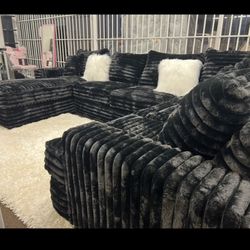 Black Plush Sectional Includes Ottoman and accent pillows Plush Wide Wale Corduroy 99x99$549Upland, CA