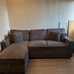 Sectional Sofa Dark Gray Storage Ottoman Included Accent Pillows Nailhead Trim Two Cup Holders 6x8$399Claremont, CA