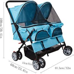 Pet Stroller Twin Folding Dog Cat Carrier Travel Cart, Multiple Colors Blue$75Ontario, CA