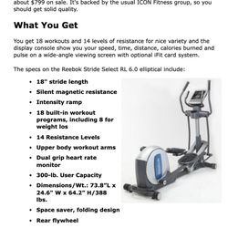 Reebok Stride Select RL 6.0 Elliptical$250Santa Ana, CA