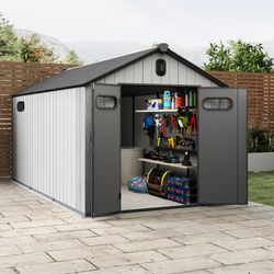 8X12FT Outdoor Resin Storage Shed, Waterproof Plastic Garden Shed with Lockable Door, Windows & Vents, Outside Tool Storage Shed for Patio Furniture, $1,200Glendora, CA