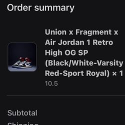 Jordan 1 Union Fragment $545Fontana, CA