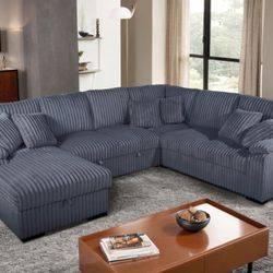 Corduroy Modern Sectional Sofa With Storage Chaise And Pull Out Bed $489Rancho Cucamonga, CA