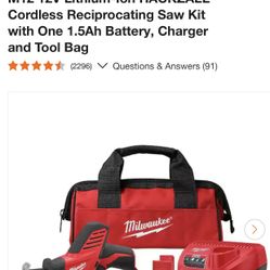 Milwaukee M12 12V Lithium-Ion HACKZALL Cordless Reciprocating Saw Kit with One 1.5Ah Battery, Charger and Tool Bag$120Pomona, CA