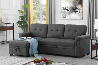 Lucca 84 Dark Gray Linen Reversible Sleeper Sectional Sofa with Storage Chaise$450West Covina, CA