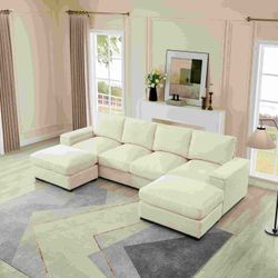 Sectional Sofa Deep Seat Sofa Couch with Ottomans, Corduroy Sofa Sleeper Comfy Upholstered Furniture for Living Room, Apartment, Office, (4-Seat & 2-O$850West Covina, CA