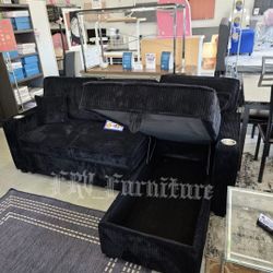 NEW Large U Shape BLACK Chenille Fabric Sectional Sofa and Chaise with Ottoman Set Ashley Style BIG Couch SALE Sleeper Can combine into Bed Clearance$799Chino, CA