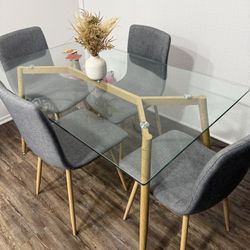 Modern Glass Dining Table Set with 4 Chairs – Gold Frame & Grey Upholstery$90Fullerton, CA