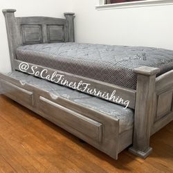 Full Twin Grey Frenchi Trundle Bed With Ortho Mattress $479Bloomington, CA
