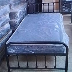 Black Twin Bed Frame with Mattress and Box Spring$100Fontana, CA