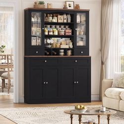 71''Tall Food Pantry Cabinet, 47.2'' Wide Kitchen Hutch with 4 Drawers & Shelves & Wine Rack, Glass China Cabinet for Dining Living Room, Black$150Rancho Cucamonga, CA