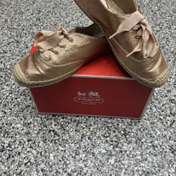 Coach Ramira Espadrilles Gold Glitter Womens Ribbon Tie Flat Shoes$25Ontario, CA