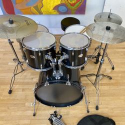 Silvertone Complete Drum Set 22 12 13 16 14” new quiet Cymbals Stands Hihat newThrone $350 Cash In Ontario 91762 good Condition Sticks Key cymbal bag$350Whittier, CA
