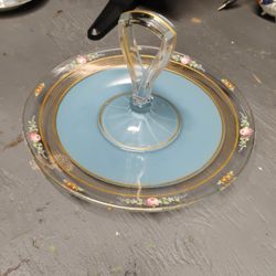 Vintage Glass Blue Enameled With Flower Printed Tidbit Tray Snack Plate Handled$25La Habra Heights, CA