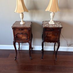 Two Antique Rosewood Nightstands With Two Alabaster Antique Lamps$100Manhattan Beach, CA
