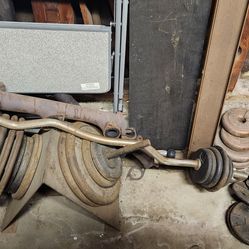 BRAND NEW: 7 ft Standard Bar With VINTAGE Cast Iron Weight Plates: 50s,25s, 10s, And 5s. (Total: 205 lbs) $289Los Angeles, CA
