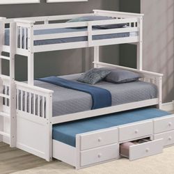 Brand New White Twin Over Full Bunk Bed w Trundle Bed + Drawers $699Inglewood, CA