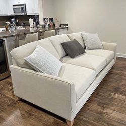 Living Spaces Japandi 93" Beige Fabric Sofa Couch with Ottoman$900Costa Mesa, CA