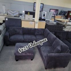 ✅️✅️4 pc black corduroy fabric upholstered sectional sofa with ottoman✅️✅️$425Pico Rivera, CA