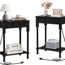 23.6” Large End Table with Charging Station, Set of 2, Modern Farmhouse Side Table Sofa Tables with Fluted Drawer, Wooden Bedside Table Night Stand $75Arcadia, CA