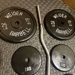 Standard Curl Bar with Weight Plates: 25s, 10s, 7.5s and 5 pounders. Brute Weigh: 109#$140Los Angeles, CA