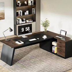 HL0204AB 78" L-Shaped Executive Desk, Large Office Desk with Drawers and Lateral File Cabinet, Busin$180Anaheim, CA