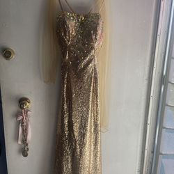 Gold sequin off the shoulder corset prom dress $70Corona, CA